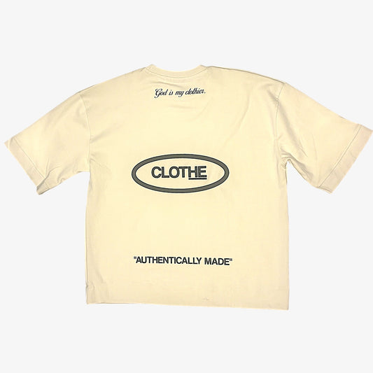 The "God is my clothier." Cream Large Print T-shirt